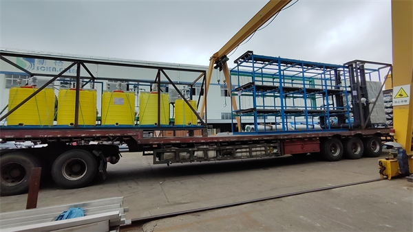 為確保設(shè)備不受磕碰,所有設(shè)備配件都是用鋼結(jié)構(gòu)架或箱體打包,此次裝車(chē)12輛、共用三天時(shí)間完成發(fā)貨。現(xiàn)場(chǎng)我們看到裝車(chē)師傅有序的操作著行車(chē)裝車(chē),裝車(chē)后發(fā)往連云港港口再運(yùn)往印尼。后續(xù)工程安裝,請(qǐng)大家繼續(xù)關(guān)注我們,有除鹽水項(xiàng)目需求請(qǐng)聯(lián)系我們!